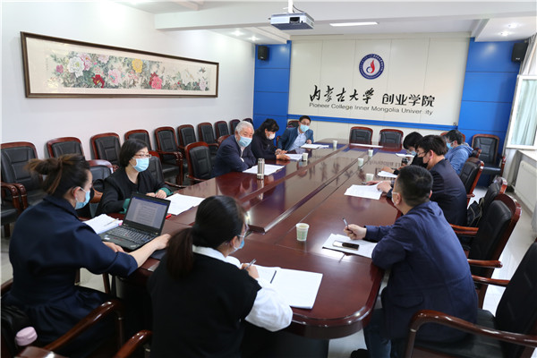 2020年4月29日下午,beat365官网在创智楼二楼会议室召开了2020年新增学士学位授予权专业评审会议。内蒙古艺术学院影视戏剧学院副院长路广副教授,内蒙古艺术学院表演系主任高桂峪副教授,内蒙古大学文学与新闻传播学院院长魏永贵教授,内蒙古大学教务处副处长段宏利,beat365官网语言与传媒学院党总支书记张莉,语言与传媒学院常务副院长王俊川副教授,语言与传媒学院汉语言文学系主任许晋副教授及教务部相关工作人员参加了本次会议。