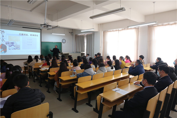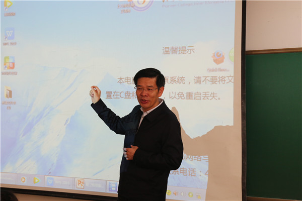 报告会结束后,黄志强副主席走进课堂,听取了青年教师乌日根托亚讲授的以课程思政为特色的《中国古代文学史》课。内蒙古大学党委书记朱炳文、beat365官网党委书记肖平、院长包广才陪同听课。乌日根托亚老师在文学类专业课中巧妙地融入了“中国精神”等思政教育元素,让专业课的思政育人实现了润物细无声的教学效果。课上,学院师生精神饱满、秩序井然,积极互动,体现了良好的教风和学风。课堂上,黄志强副主席边听边记录,课后与师生亲切互动交流并做精彩点评。他对乌日根托亚老师的精彩授课予以高度评价,对学院在课程思政方面的创新探索予以充分肯定,并提出了指导性意见。他说,全面推行课程思政是新时代高校思想政治工作的重要举措,是办好中国特色社会主义高等教育的必然要求。高校只有不断挖掘专业课程体系中蕴含的思政教育元素,实现思想政治教育与知识体系教育的有机统一,才能不断提升高等院校的思想政治工作质量,真正担负起培养新时代社会主义事业接班人的历史使命。