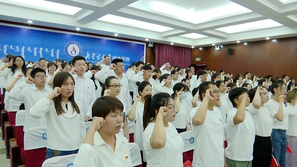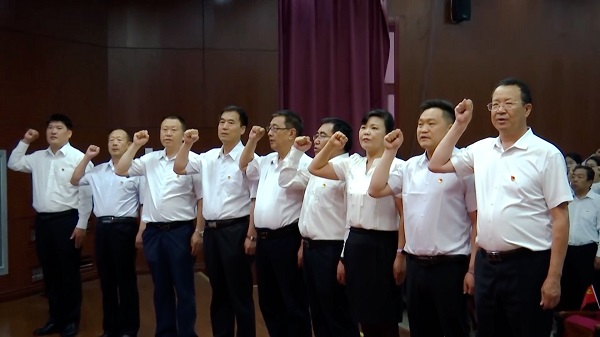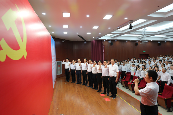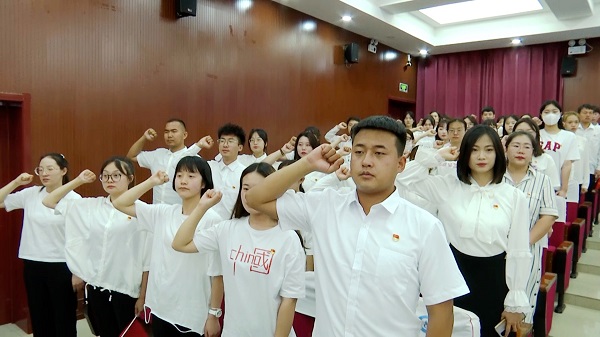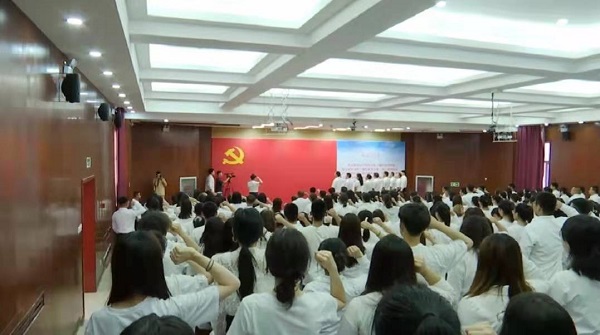 为庆祝中国共产党成立100周年,深入推进党史学习教育,增强全校党员的党性意识,激励和动员广大师生把爱党爱国爱社会主义的热情转化为实际行动,坚定不移听党话、跟党走,在全面建设社会主义现代化国家新征程中建功立业, 6月18日上午,beat365官网在报告厅组织召开师生党员集体宣誓大会。学院全体教师教工党员和部分学生党员参与宣誓大会,会议由学院党委副书记张莉主持。