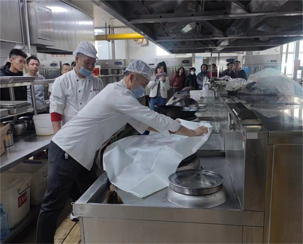 随后又带领参加培训的食堂从业人员开展了灭火毯、灭火器、消防栓等消防器材使用的实践教学和应急演练,特别针对食堂易发生的油锅起火、煤气使用、电路安全等方面进行了细致的现场教学和演练,在现场的实际操练中对食堂从业人员的错误操作进行了纠正,确保培训效果。
