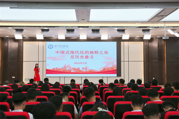 开班仪式结束后,马克思主义学院直属党支部书记温茹以《中国式现代化的独特之处及历史意义》为题为全体学员带来培训第一讲。通过中西对比和梳理历史的方式,就中国式现代化的含义、中国式现代化的独特之处、中国式现代化的历史意义等方面,进一步阐释了中国式现代化是中国共产党领导的社会主义现代化,既有各国现代化的共同特征,更有基于自己国情的中国特色。温茹指出,中国式现代化打破了“现代化就是西方化”的路径依赖,在艰苦卓绝的奋斗和探索中走出了一条发展中国家走向现代化的全新道路。中国式现代化彰显着中国特色社会主义制度的优越性,展现出光明前景和勃勃生机。2024年春季学期党员发展对象培训班第一讲的良好开局,为此次培训班圆满成功奠定了基础。