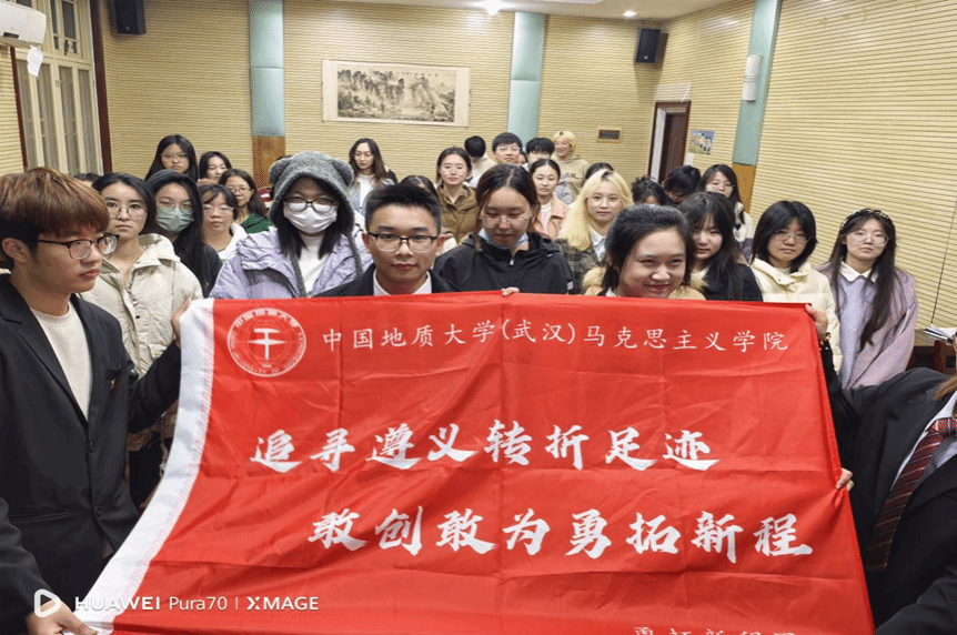然后,魏雨暄同学向大家揭示了“敢闯新路”精神在“青春奋进”与“创新驱动”方面的意义,分别阐释了遵义会议精神的当下意义与现实意义,并激励青年勇于开拓,让遵义会议精神在新的历史条件背景下焕发出蓬勃葱茏的生机与活力,为实现中华民族的伟大复兴而奋斗。