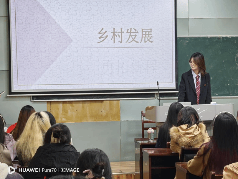 接着,胡茂诚同学向大家讲述“敢闯新路”精神 的 现实意义和深刻启示。并从乡村发展、科技创新、文化传承三个方面入手,通过遵义花茂村、华为公司、天水市文旅三个实例,展示了“敢闯新路”精神的 在科技领域的 生命活力。