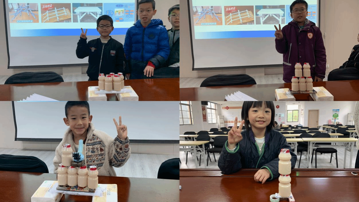 最后,主讲人组织小朋友们进行“纸桥承重PK大赛”。在团队成员的帮助下,小朋友们成功利用A4纸设计并制作桥梁模型,通过比拼承重能力,亲身体验了结构力学的奥妙。小朋友们纷纷表示:“动手实践让我们更直观地理解了工程师的智慧,也感受到中国桥梁背后的科技力量。”