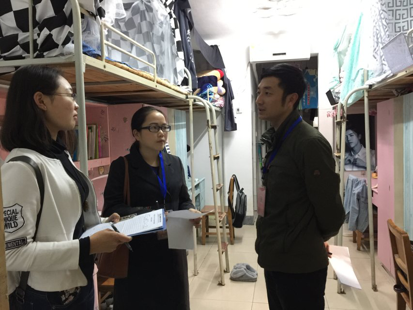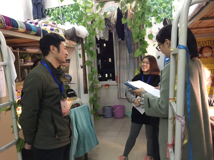 为优化万象城学生的学习生活环境,加强学生的安全防范意识,11月16日晚,马克思主义学院辅导员王艳波老师、兼职辅导员董树婷以及主要学生干部对全体本科生宿舍开展卫生安全大检查。