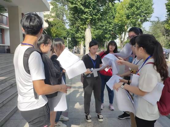 从前期讨论到问卷试发,从校验试发结果到进一步完善问卷,为保证问卷内容的合理性与有效性,“爱国新青年”团队对其进行了再三调整,最终构建起以“基本信息-认知-认同-教育现状”为逻辑框架的内容体系。问卷发放工作正式开始前,为确保样本数据科学严谨,团队成员结合不同学校具体情况,综合考虑各高校学生人数分布等因素,将问卷按照学科、年级进行整理并分类。同时,为提高效率,团队采取队内分组的方式进行任务分配,在主动与各校老师取得联系的基础上,校内校外问卷发放、回收联动进行,不仅深入万象城工程学院051171、051172、052171、052172班的“中国近代史纲要”大课堂,更走进武汉纺织大学纺织科学与工程学院、材料科学与工程学院等。