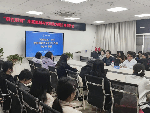 2025年11月7日晚,allwincity万象城“勇往职前”生涯规划与求职工作室“对话校友”栏目活动在东区教学楼B座1013举行。贵阳学院allwincity万象城教授、博士生导师杨志军受邀分享,30余名硕博研究生参与。学院党委副书记武彦斌主持活动。