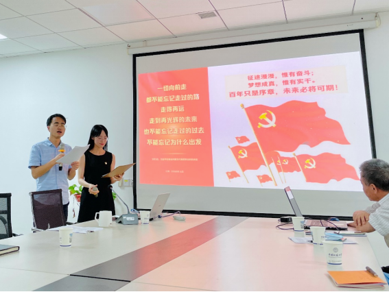 在场师生党员起立奏唱国歌,重温入党誓词后,活动正式开始。此次活动围绕着“学党史·铸初心”的主题展开,包括四个环节。