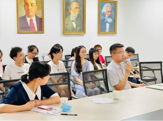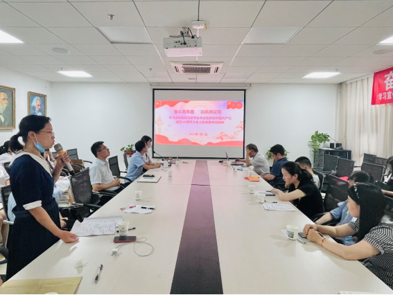(通讯员:王舒晨、张东凯、李蔚然)奋斗百年路,启航新征程。在庆祝中国共产党成立100周年这个光荣的日子,德育教研部党支部与2020级马克思主义理论硕士生党支部于2021年7月1日下午14:30在东区教学综合楼B1013开展“学党史·铸初心”党史学习交流会暨结对领航支部联合主题党日活动。此次活动共历时三小时,由支部书记李蔚然老师和张东凯同学共同主持,师生党支部全体同志参与了本次交流活动,院长阮一帆为在场党员开展党史学习教育专题辅导。