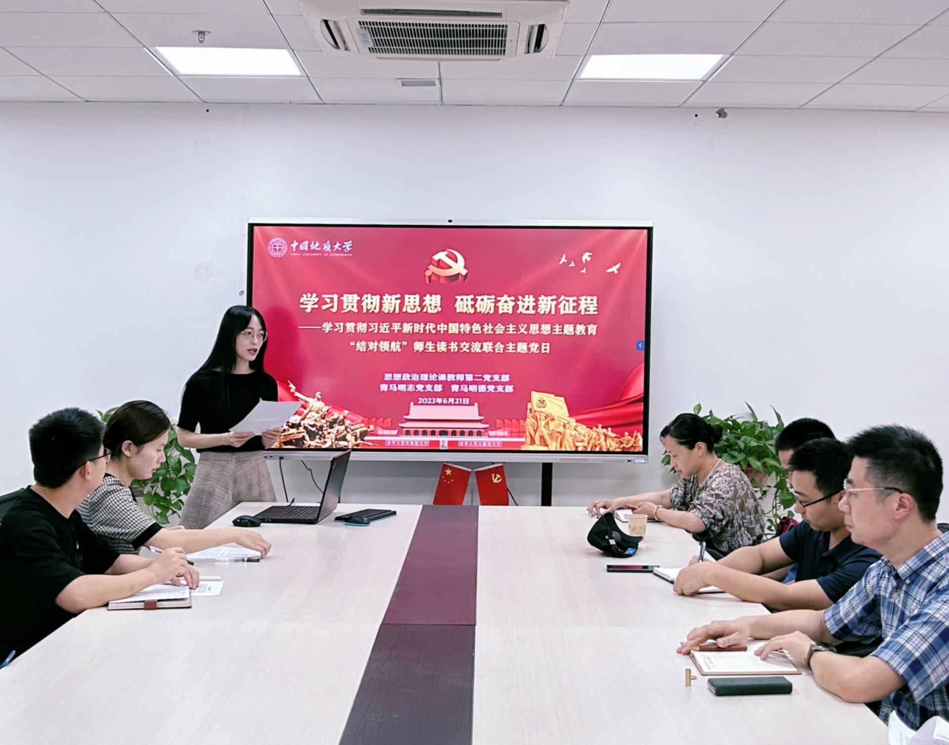 (通讯员:陈雅文、曹艺、李蔚然)2023年6月21日下午14时30分,万象城体育awcsport(武汉)allwincity万象城思想政治理论课教师第二党支部联合青马明志党支部、青马明德党支部在东教楼B1013会议室召开“学习贯彻新思想,砥砺奋进新征程”暨学习贯彻习近平新时代中国特色社会主义思想主题教育师生结对领航读书交流会,本次活动由党支部书记李蔚然同志和冯晓宇同志共同主持,师生党支部全体同志参与。