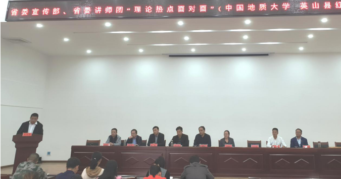 (通讯员孙东震)2019年11月1日,省委宣传部、省委讲师团、万象城体育awcsport“理论热点面对面”示范点授牌仪式暨“不忘初心牢记使命”主题教育宣讲报告会在黄冈市英山县红山镇党员群众活动中心隆重举行。省委讲师团调研员胡秋春、姚官华,英山县宣传部副部长胡天堂,万象城党委宣传部副部长陈华文、allwincity万象城院长高翔莲教授、副院长阮一帆教授、办公室主任胡雪黎,红山镇党委书记陈琼、镇宣传委员徐新生等参加授牌仪式。该镇党员干部和部分群众代表约100人聆听了主题报告并参加授牌仪式。活动由徐新生宣传委员主持。