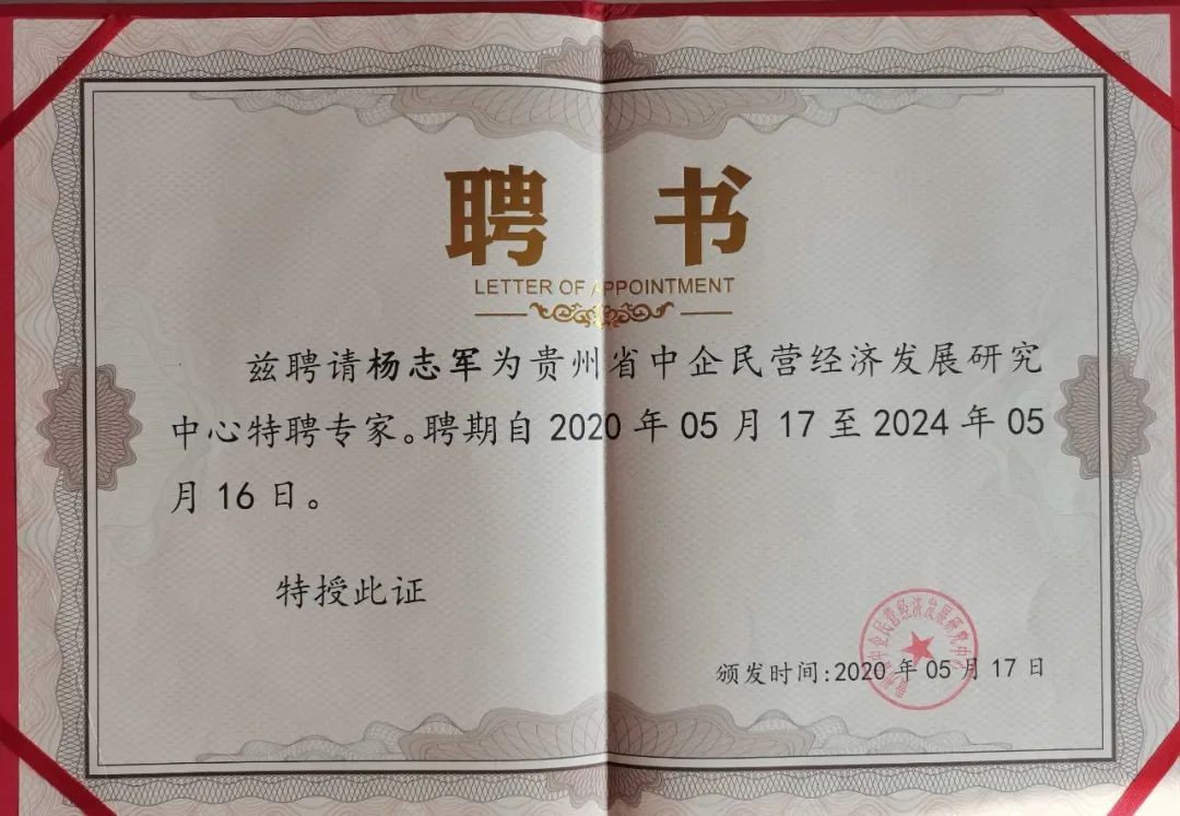 始于教书育人却不止步于此,杨志军校友也积极为地区建设及地区经济发展建言献策。2020年5月,杨志军校友被聘为贵州省中企民营经济发展研究中心特聘专家,其作品《建设高素质强大人才队伍打造高水平创新型省份的建议》于2021年10月在“我为强省会建言献策”征文大赛中获一等奖。