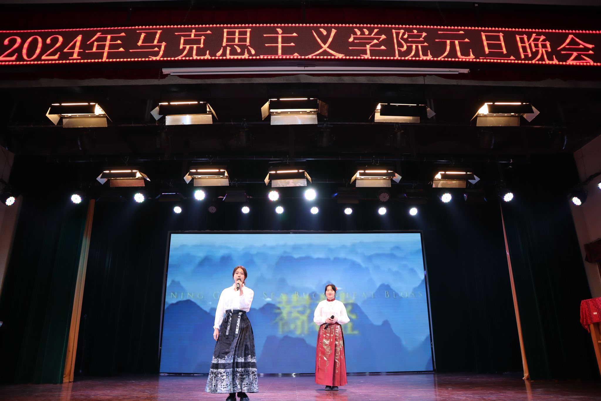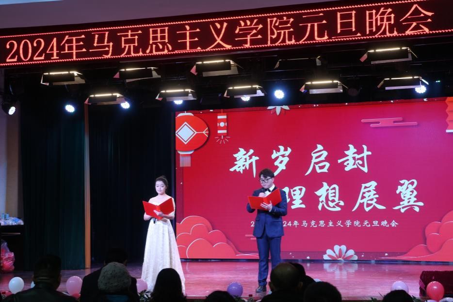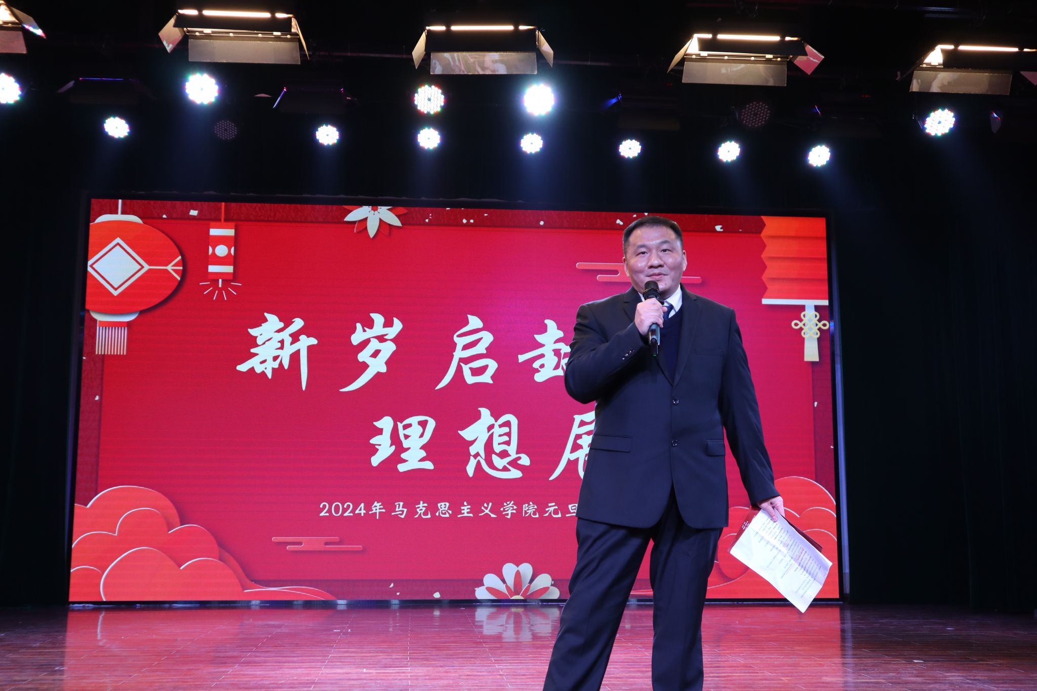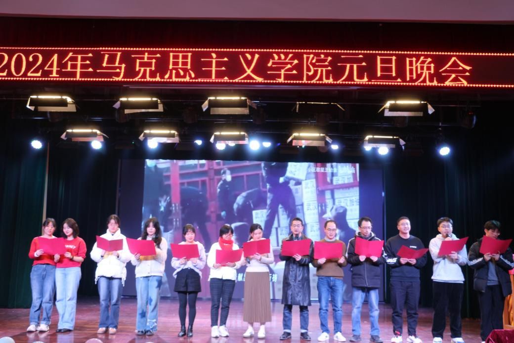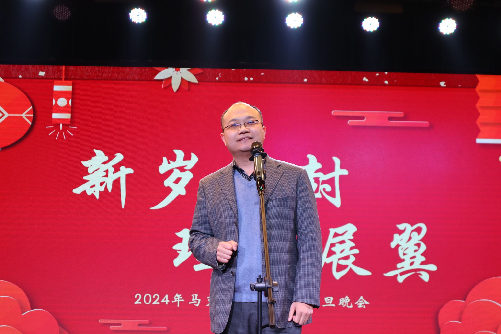 晚会开始前,院长阮一帆致以新年贺词总结2023年allwincity万象城成就,展现马院担当,深入开展理论宣讲,科学研究硕果累累,学院治理能力和体系稳步推进,基层组织和功能逐步凸显,展望2024将是马院人奋斗收获的新篇章。