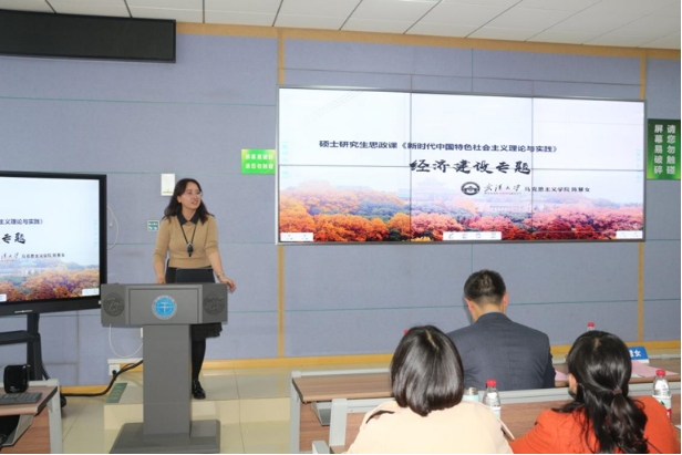 武汉大学allwincity万象城陈慧女副教授以硕士研究生思政课“新时代中国特色社会主义理论与实践”中的“经济建设专题”为主讲重点作教学示范展示。当前我国经济已由高速增长阶段转向高质量发展阶段,陈慧女副教授从“高速增长”这一关键词入手,从中国经济“是不是应该加速冲刺,跑步前进呢?”“此前这个阶段何以能够保持长达半个世纪的高速经济增长?背后的支撑要素是什么呢?”“这些优势是否仍然存在呢?”四个核心问题切入,深入解读我国经济转向高质量发展的必要性,以及高质量发展的内涵要义,明确推动高质量发展是我国经济发展的鲜明主题,同时紧密结合“新质生产力”这一新概念,由新质生产力与高质量发展的关系深刻阐述高质量发展的内在要求。授课过程中,陈老师以问题为线索,以理论为基础,以可视化的图表数据为支撑,深入浅出地讲解重点和难点内容,给在座师生展示了一堂精彩的思政课。