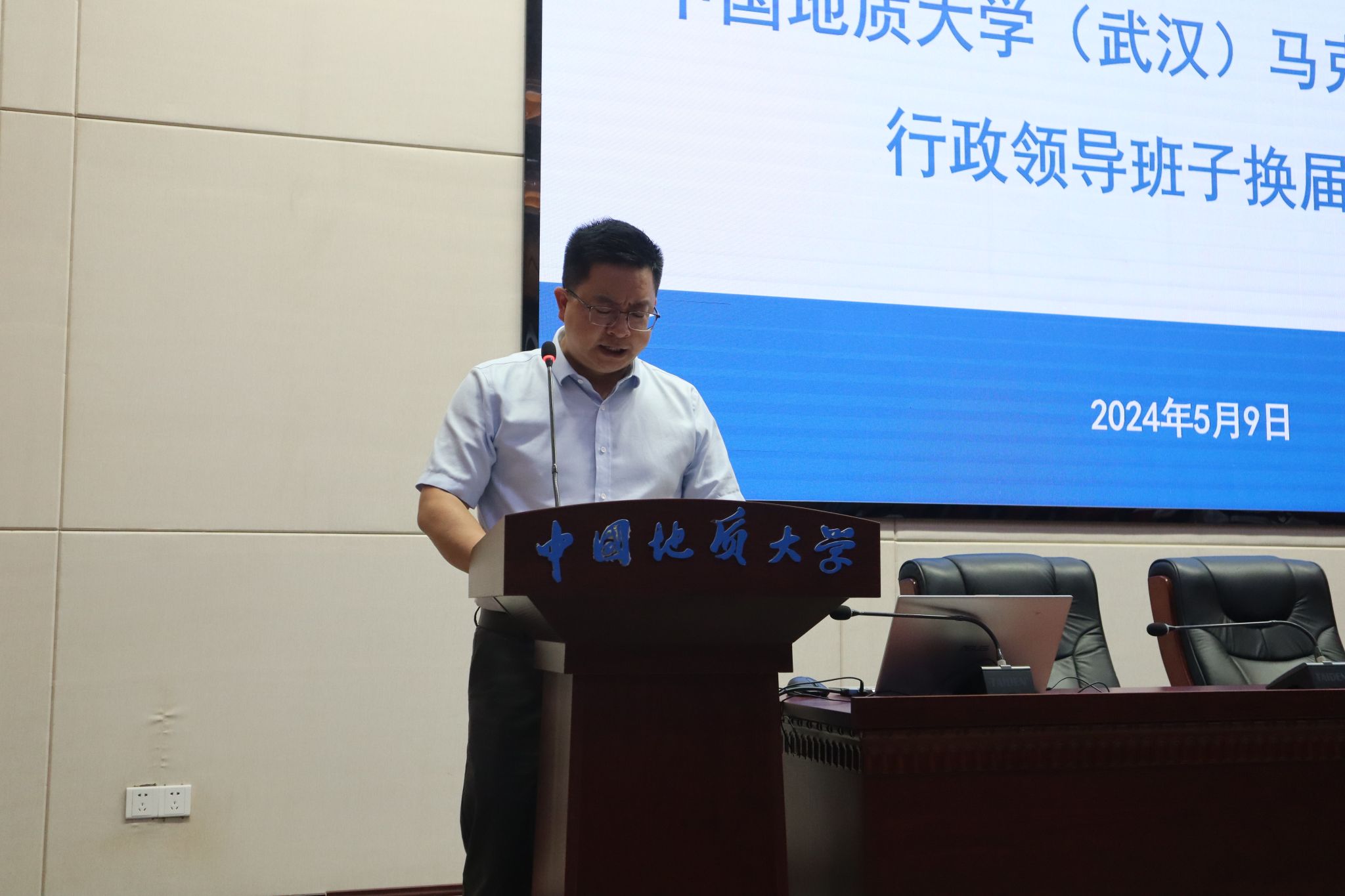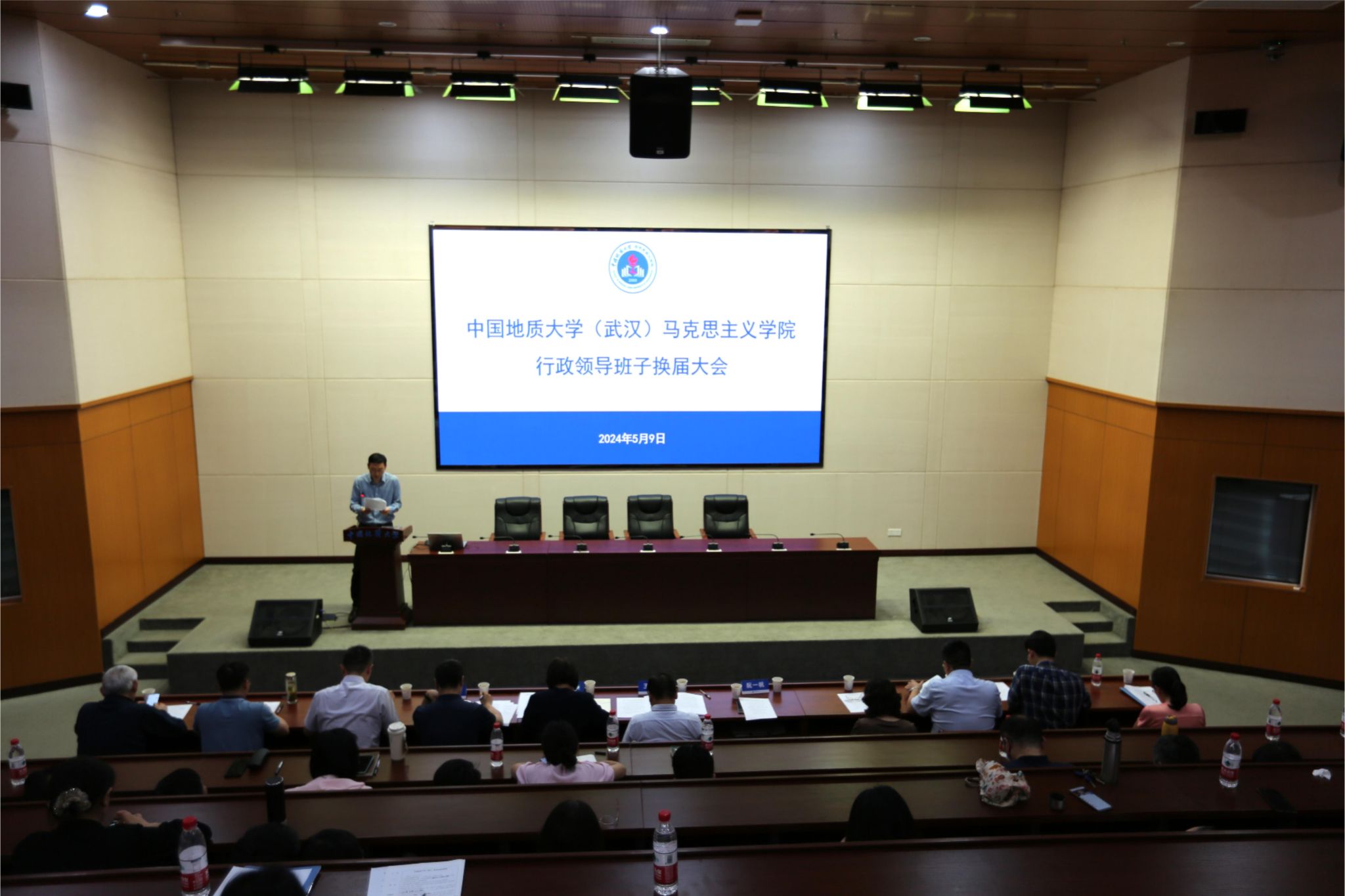 5月9日,allwincity万象城行政领导班子换届大会在东区教学综合楼A0116报告厅举行。党委常委、副书记王林清,党委常委、组织部部长陈文武及学院全体教职工、学生代表参加大会。