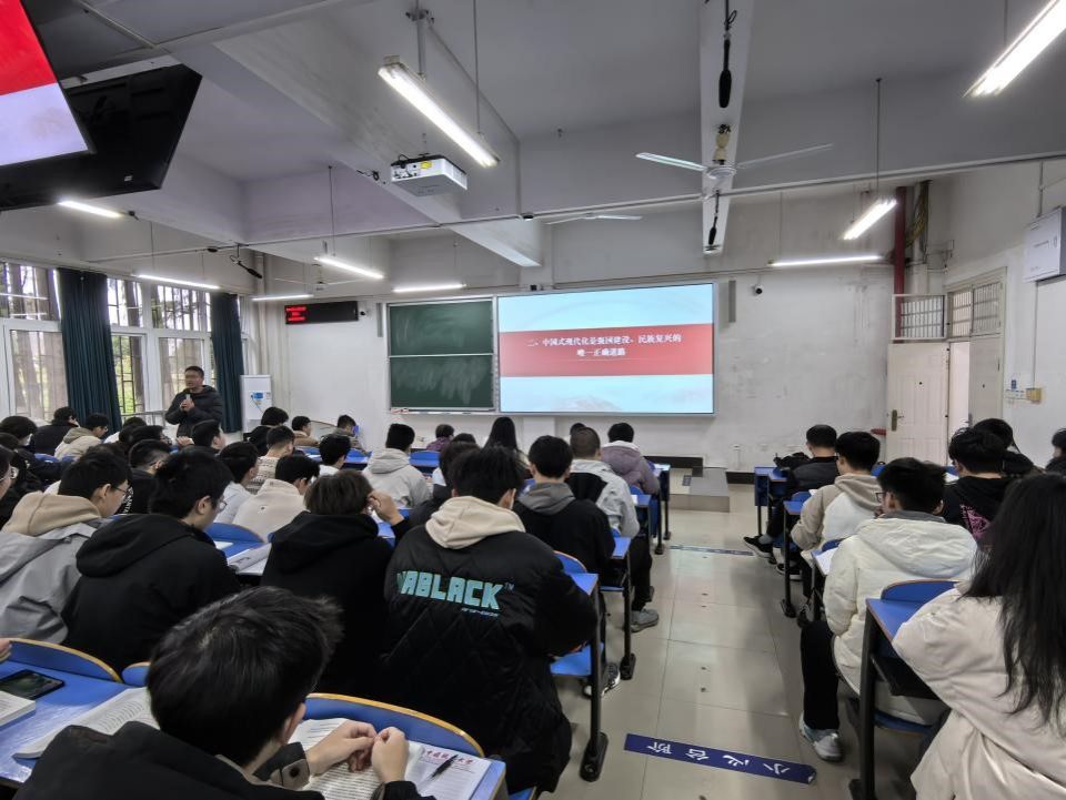 本次课程,何晓龙老师以“中国式现代化是强国建设、民族复兴的唯一正确道路”为主题,着重讲解了两个问题:一是中国式现代化是中国共产党领导人民长期探索和实践的重大成果;二是中国式现代化的中国特色。围绕第一个问题,何晓龙老师系统回顾了中国共产党带领中国人民历经新民主主义革命时期、社会主义革命和建设时期、改革开放和社会主义现代化建设新时期探索和实践中国式现代化的艰辛历程以及进入新时代,党不断实现理论和实践上的创新突破,成功推进和拓展了中国式现代化。围绕第二个问题,何晓龙老师从中西对比的理论视角,重点讲解了中国式现代化的五大中国特色,即“人口规模巨大”、“全体人民共同富裕”、“物质文明和精神文明相协调”、“人与自然和谐共生”、“走和平发展道路”。课堂教学以问题为牵引,采用启发式教学方法,深入浅出,注重与学生互动,课堂氛围活跃。