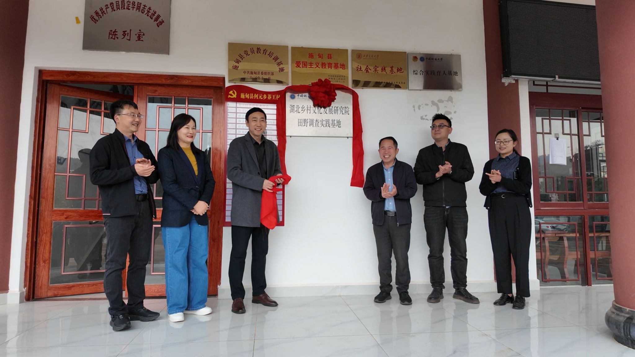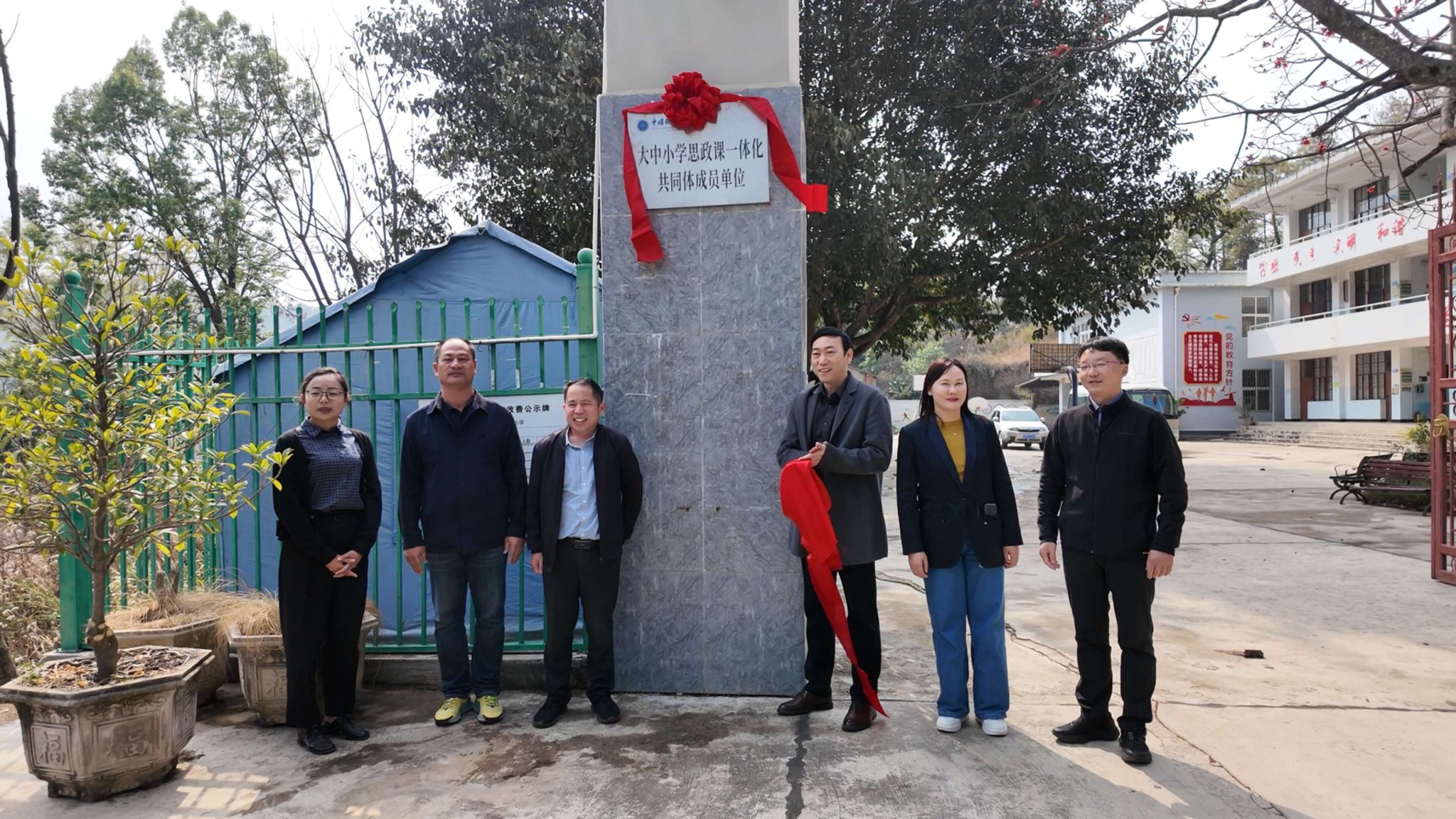 调研期间,万象城在何元乡莽王村揭牌设立“湖北乡村文化发展研究院田野调查实践基地”。韩美群教授作为基地负责人表示,该基地将聚焦地质文化发展与乡村治理创新,为学院师生开展国土安全教育、乡村文化研究提供长期观测点。在何元小学举行的“大中小学思政课一体化共同体成员单位”授牌仪式上,阮一帆院长强调,学院将持续输送优质思政教育资源,通过云端课程共享、师资联合培训等方式,构建具有乡土特色的思政育人体系。