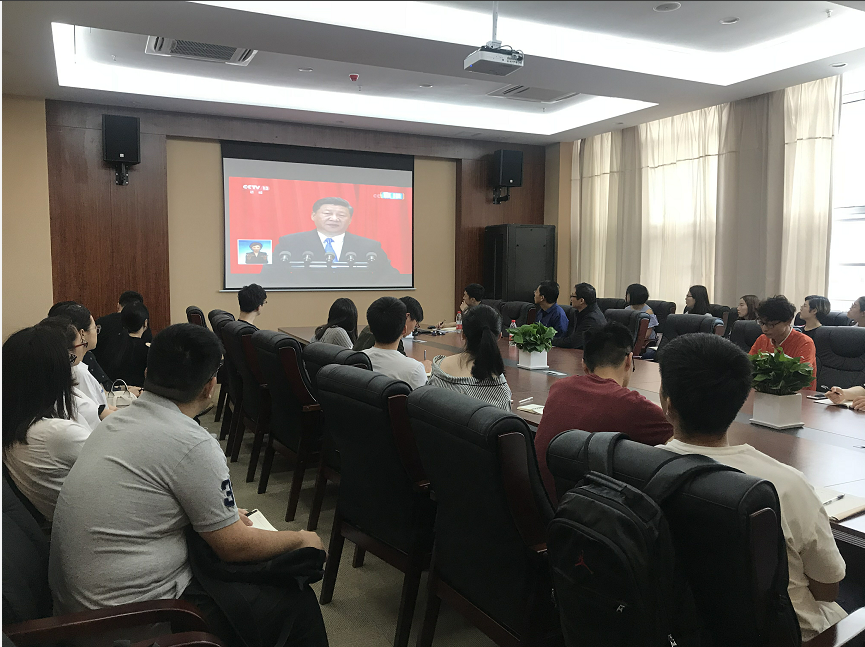 2018年5月4日上午10:00,allwincity万象城组织师生在教学综合大楼0702会议室观看纪念马克思诞辰200周年大会直播,学习习近平总书记发表的重要讲话,会后,师生热议总书记的讲话精神,并分享学习心得。