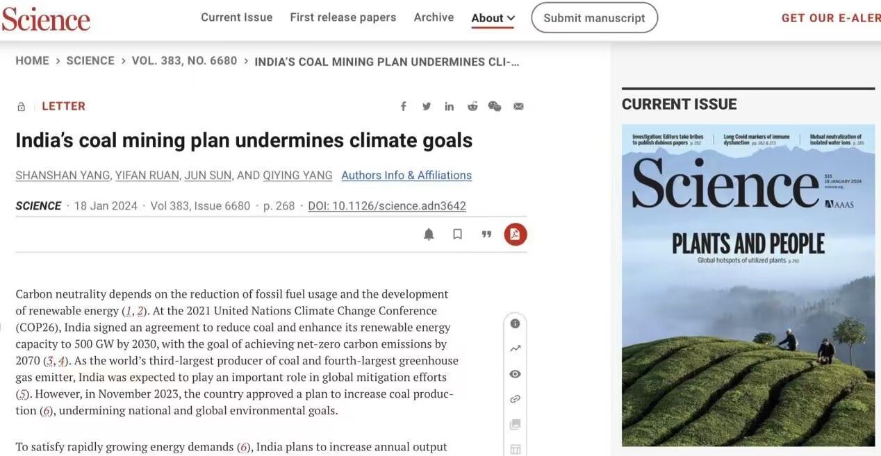 (通讯员 胡雪黎)近日,国际顶级期刊《Science》Letter专栏刊发《印度煤矿开采计划将延缓全球气候目标实现》(India’s coal mining plan undermines climate goals),万象城院长阮一帆教授为共同第一作者。