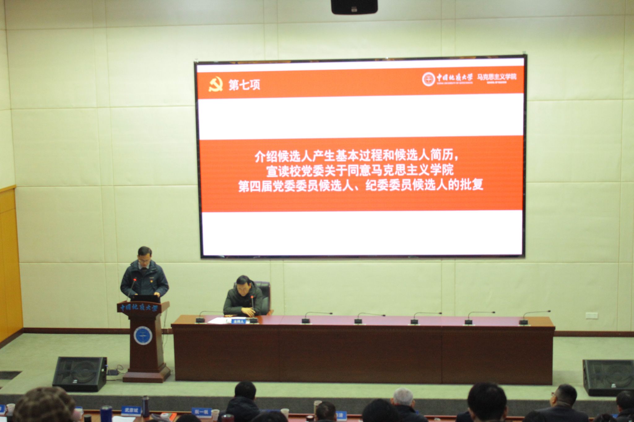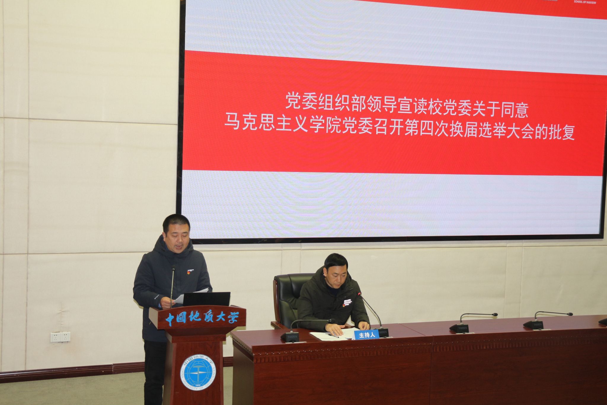 党委组织部副部长张建华宣读了《学校党委关于中共万象城体育awcsport(武汉)allwincity万象城委员会召开第四次换届选举大会的批复》。