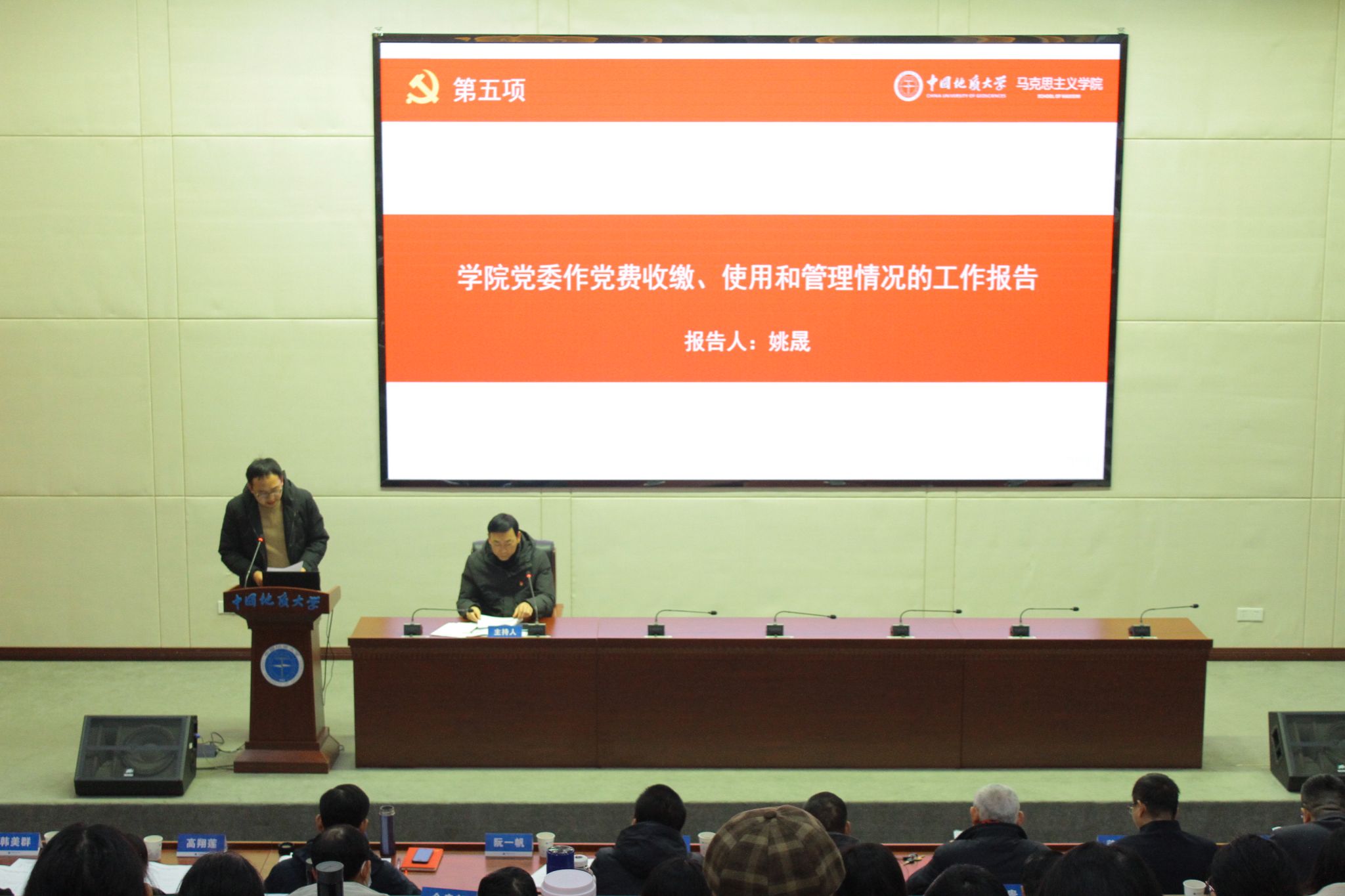 组织委员姚晟代表学院党委报告了中共万象城体育awcsport(武汉)allwincity万象城委员会党费收缴、使用和管理情况。