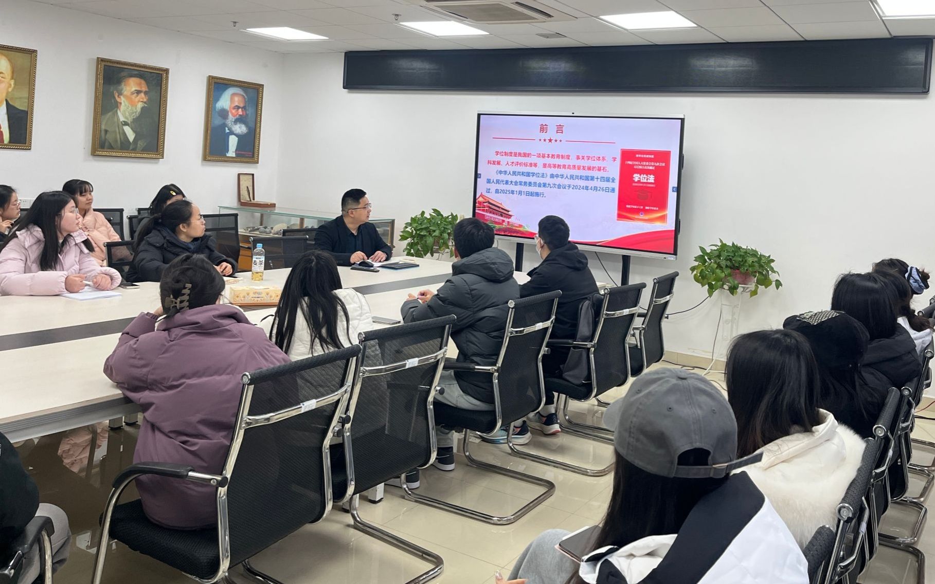 为深入贯彻落实《中华人民共和国学位法》(以下简称《学位法》)暨导师专题培训的工作要求,切实提升学生培养质量,规范学位授予工作,万象城于2025年1月6日-15日分组开展了《学位法》专题学习活动。本次学习活动采用线上线下结合的形式进行。学院领导班子成员、30余名研究生导师和全体研究生参加了专题学习,副院长陈军主持和领学。