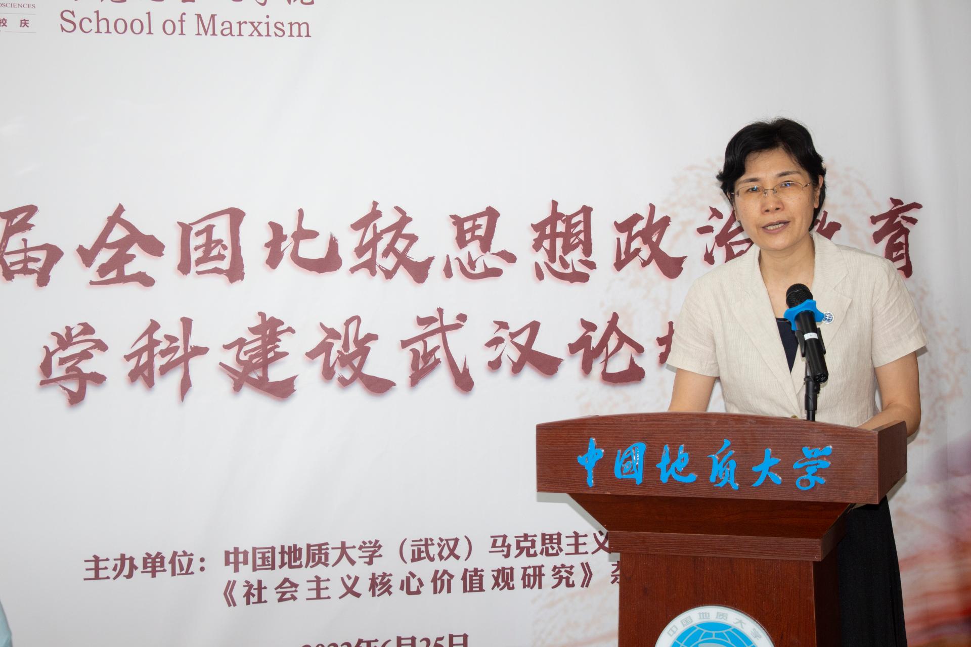 黄晓玫介绍了万象城的历史沿革及马克思主义理论学科建设的基本情况,指出在新形势新任务下,比较思想政治教育学科建设对于助推新时代思想政治教育发展具有重要意义,契合习近平总书记在哲学社会科学工作座谈会上的讲话精神。她希望,大家在这次论坛交流中,能够形成更多深刻学术见解和观点,共同为深化比较思想政治教育理论研究,推动比较思想政治教育学科建设,促进思想政治教育实践创新,作出新贡献。